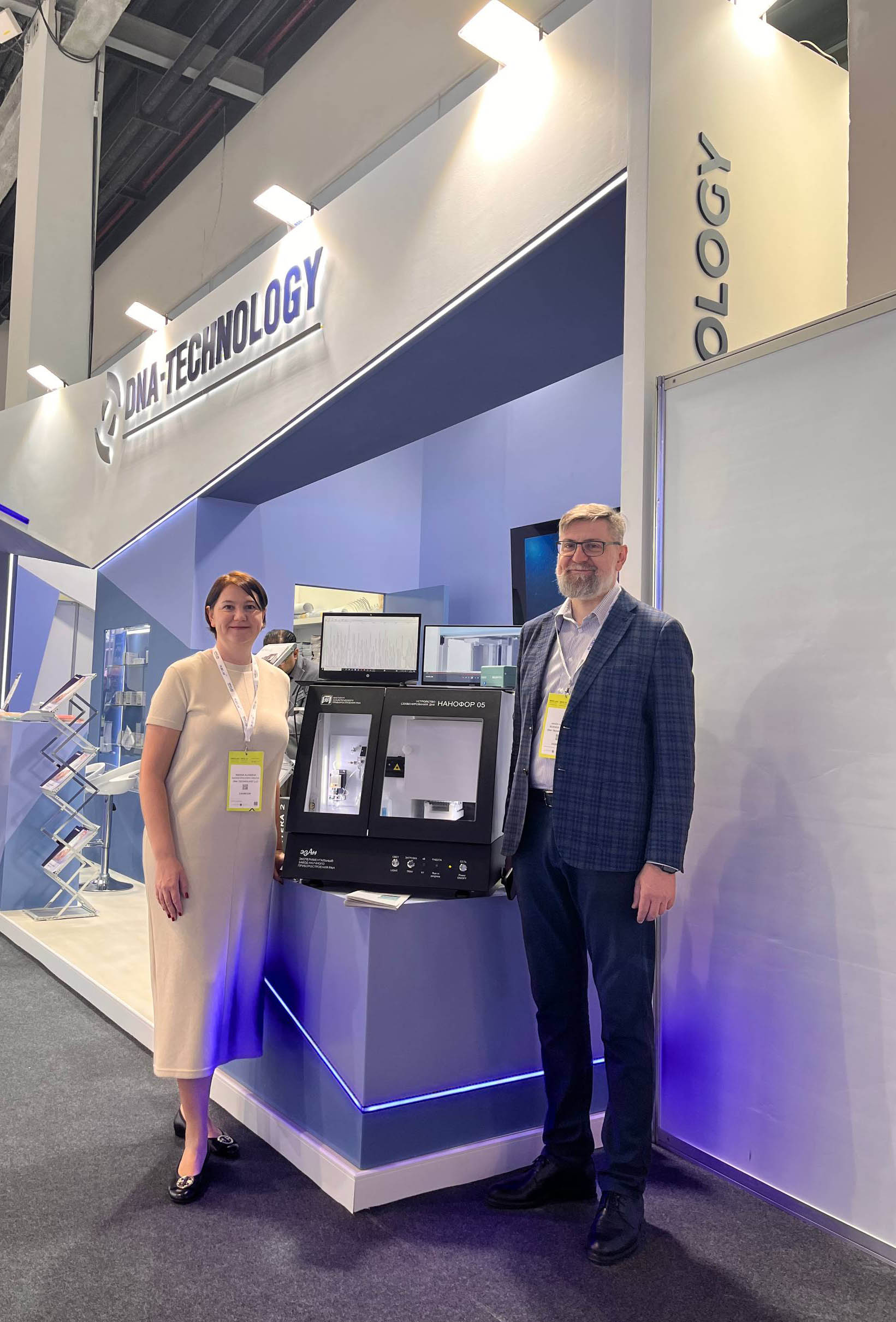 Консорциум Российские генетические технологии, в который входят ООО "НПФ Синтол" , ИАП РАН и АО "ЭЗАН" на совместном стенде с компанией ООО "ДНК-Технология" представили серийный секвенатор Нанофор 05.